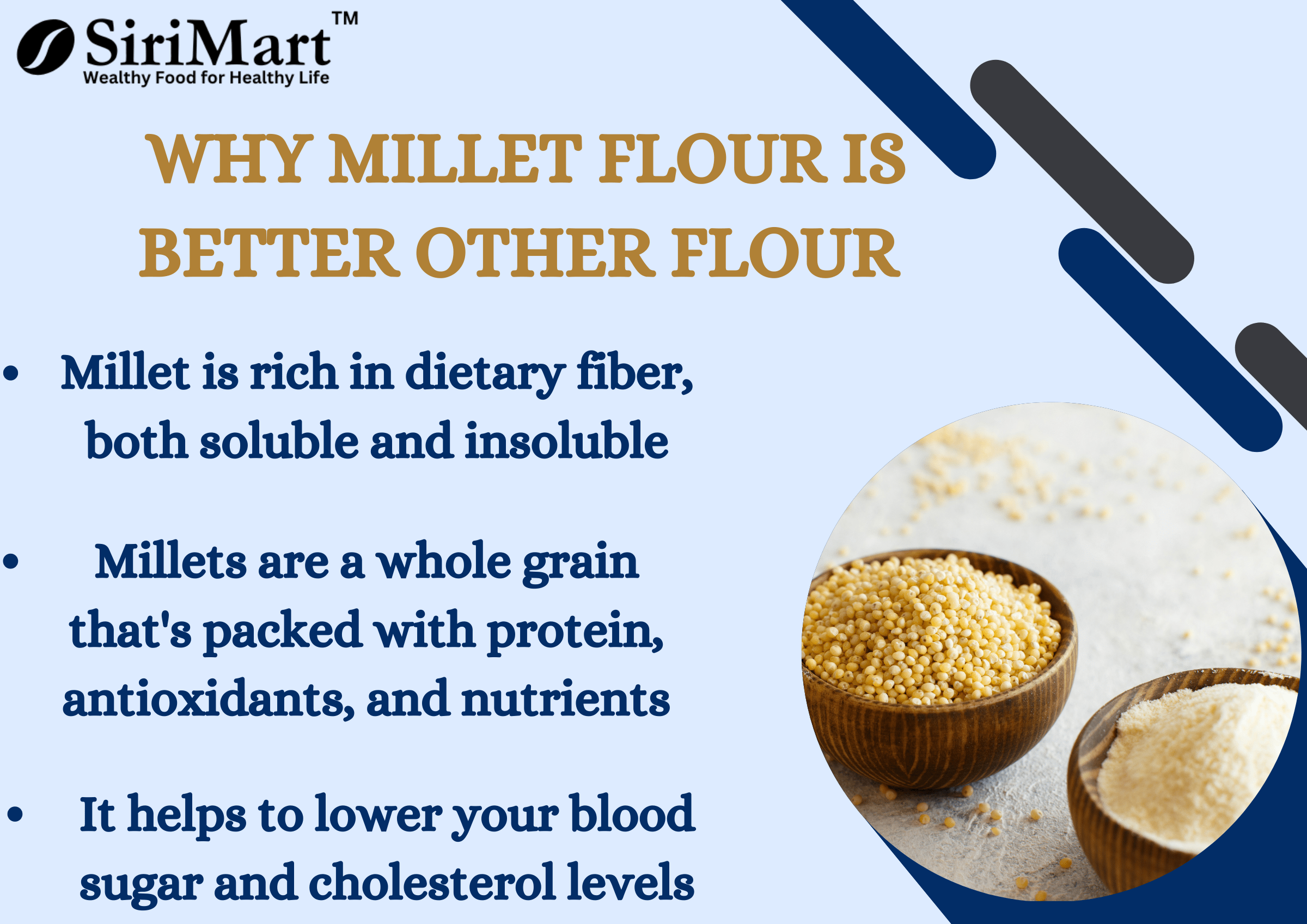 Premium Quality Fresh Millet Atta/Flour made from our own Processing Mills of SiriMart. All Flours from SiriMart are finely grinded, That makes Light and fluffy Rotis/Chapaties. All Flours are made everyday so, 100% Fresh Flour/Atta Guaranteed from SiriMart, Flours are made under great supervision. Only quality controlled products will be delivered to your Home