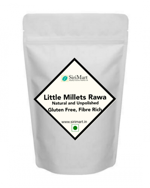 Sirimart Little Millet Rava is of a superior quality and rava is made from 100% organic whole millet. Millets are harvested organically without using any pesticides. Millets are group of nutritious cereals, least allergenic and slowly digestible. Millets are rich in phytochemicals which lower cholesterol, reduce the risk of cancer and other diseases. Rich source of proteins & adequate fats. Ideal for controlling blood sugar, helps in metabolism rate, high in antioxidants.